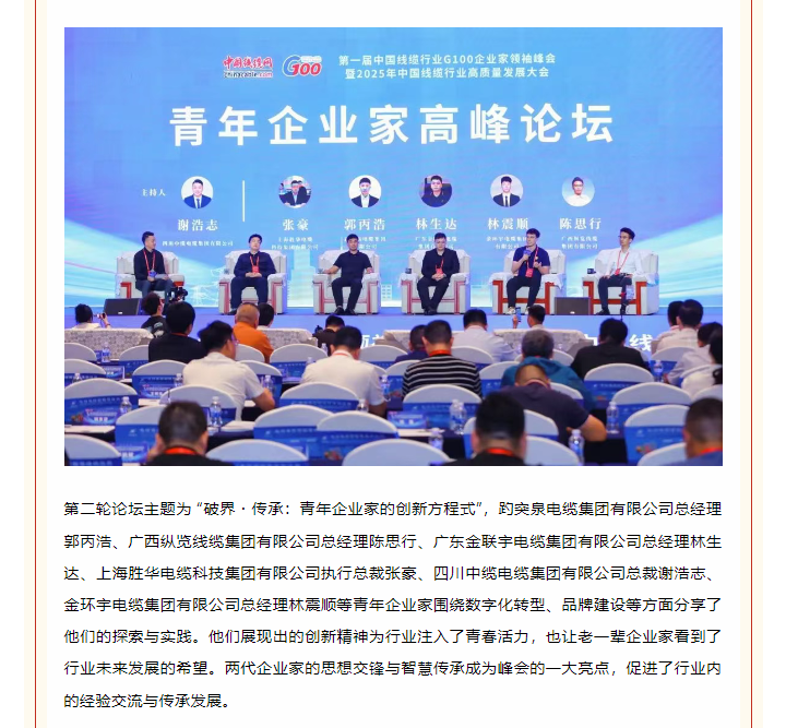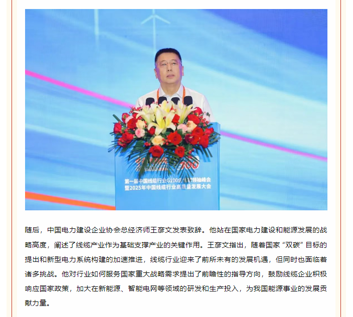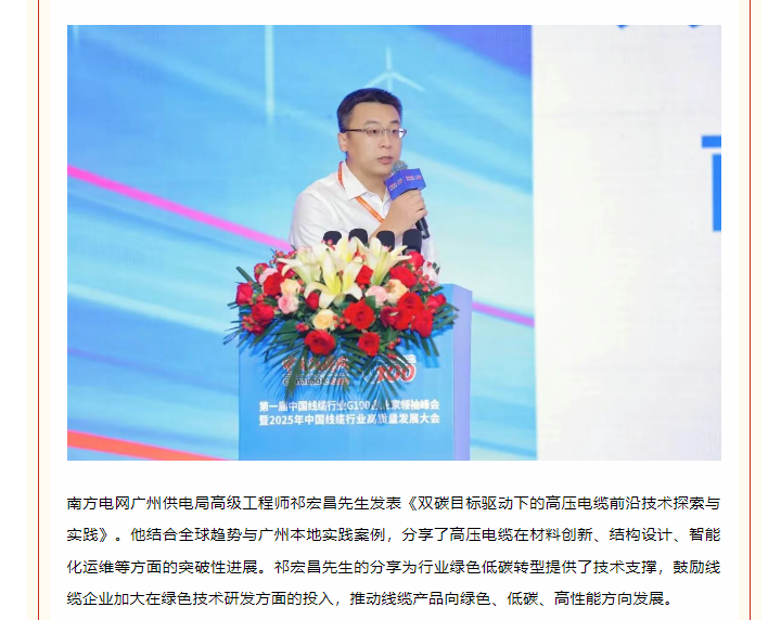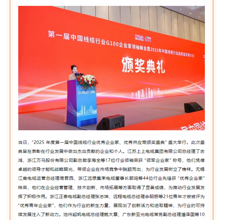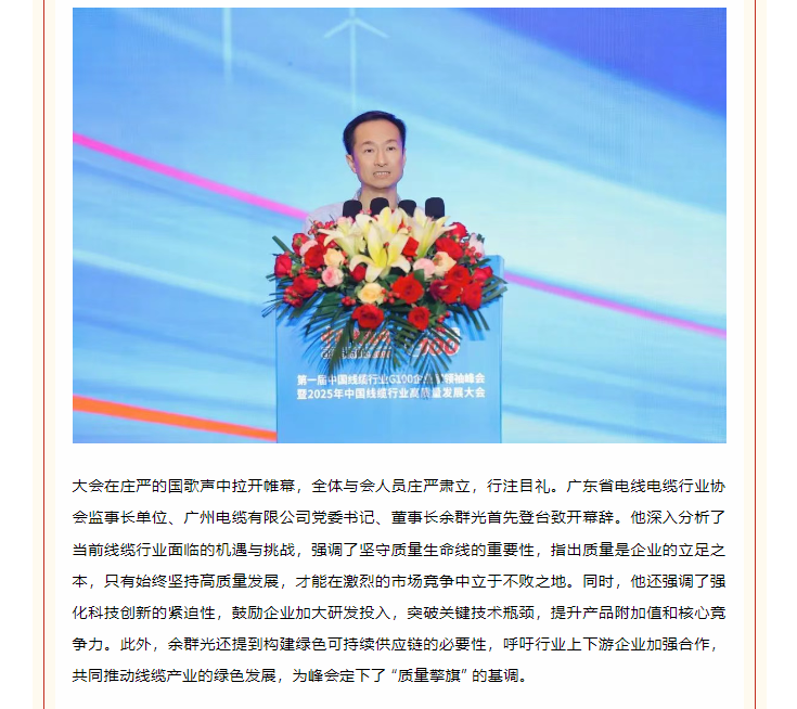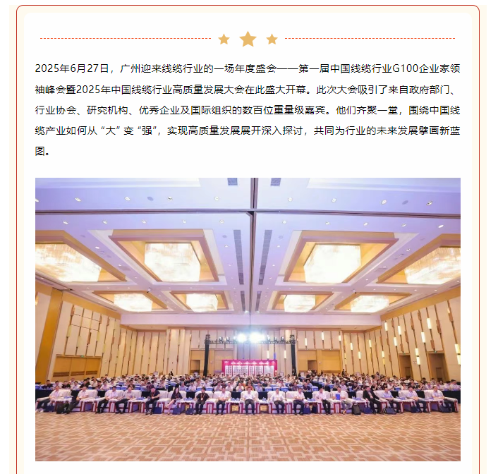 百企聚首谋远略,质量擎旗向未来——首届中国线缆行业G100企业家领袖峰会暨2025年高质量发展大会在广州盛大开幕