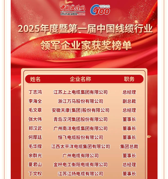 下一篇:公司生产副总刘炜荣获中国线缆行业第二届暨 2025年度“杰出青年”称号